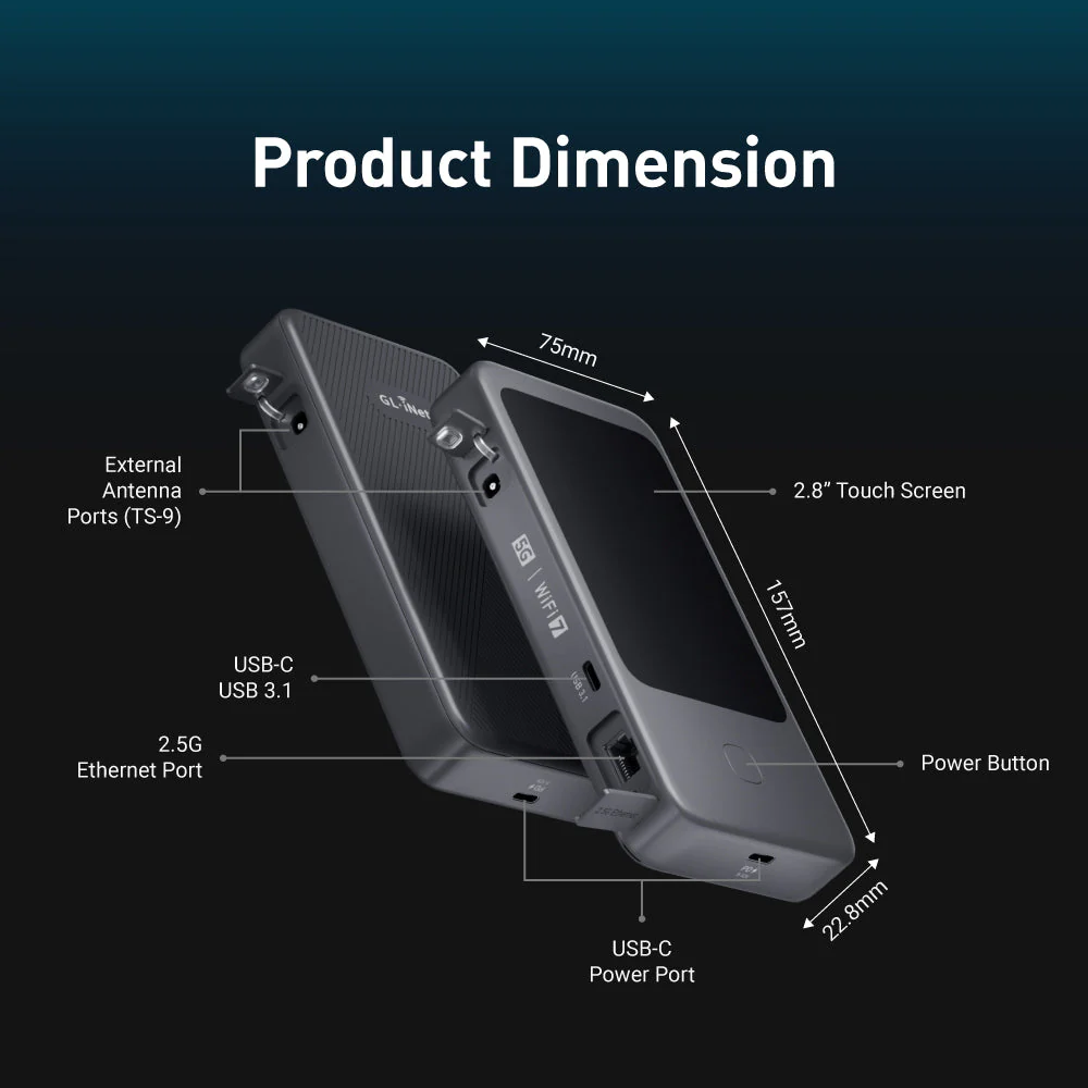 5G NR Tri-band Wi-Fi 7 Travel Router